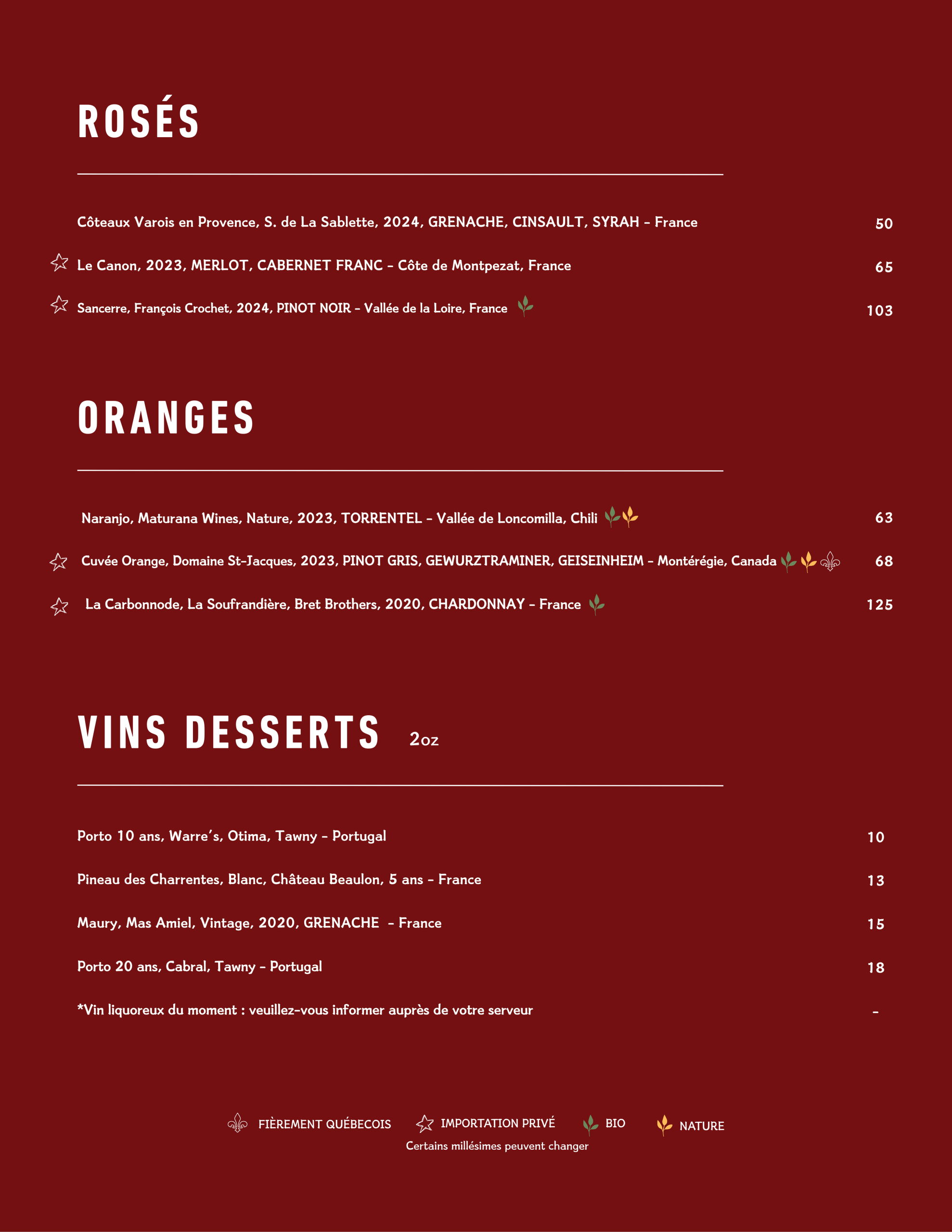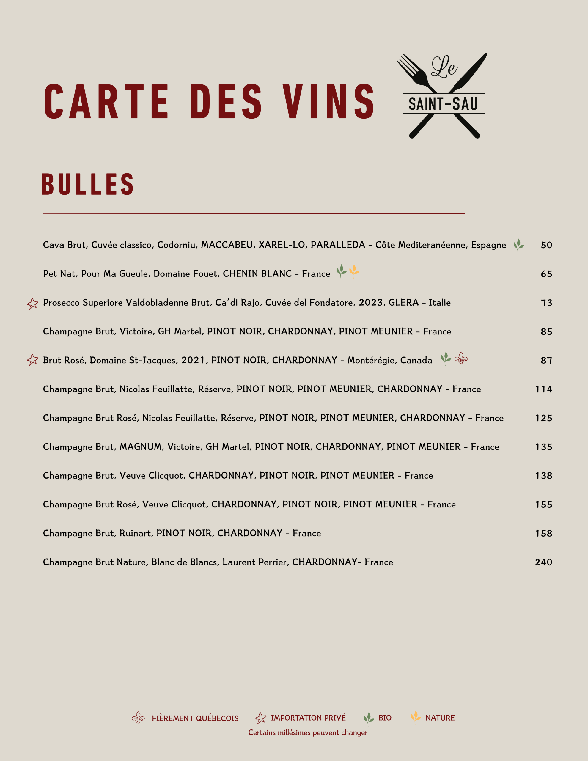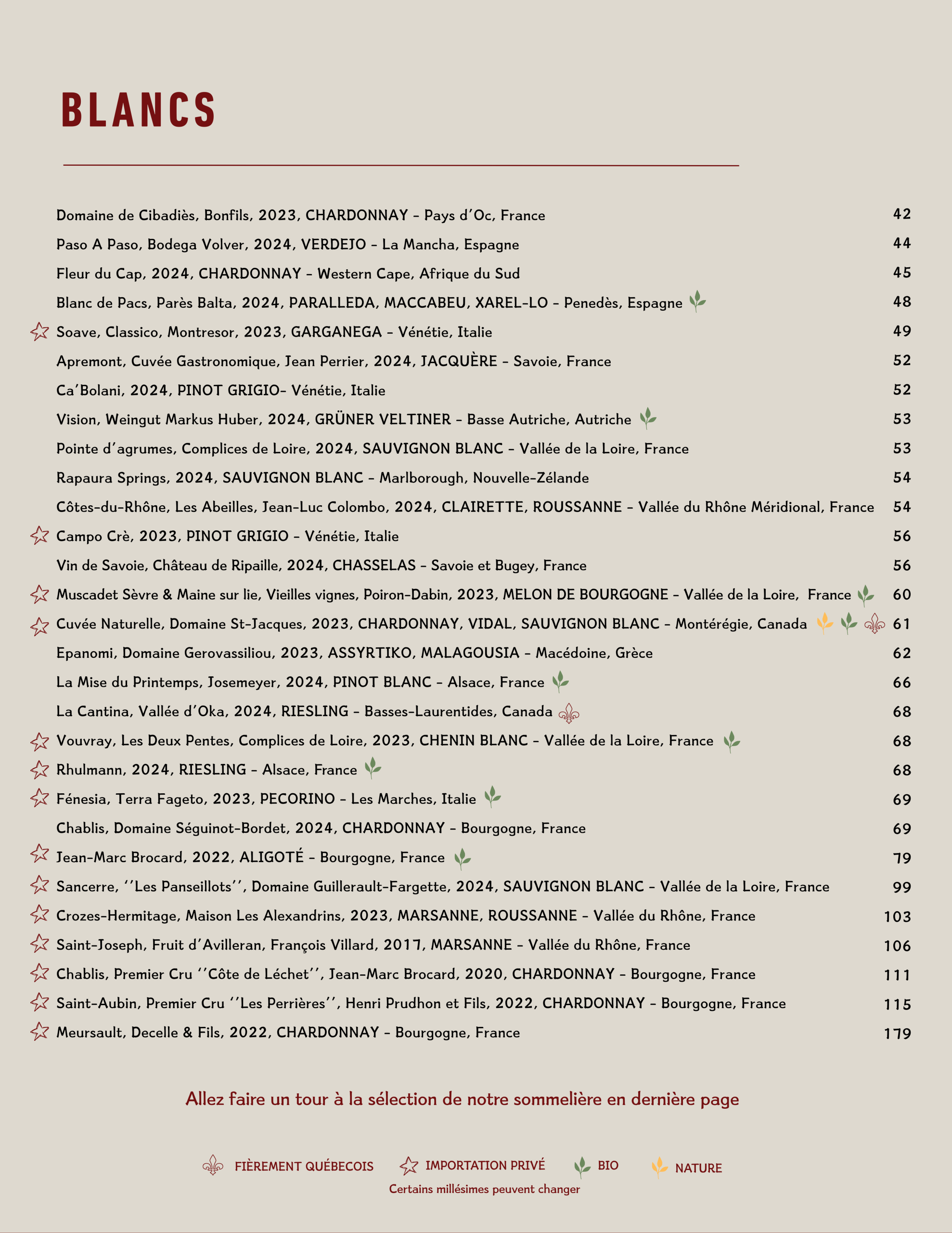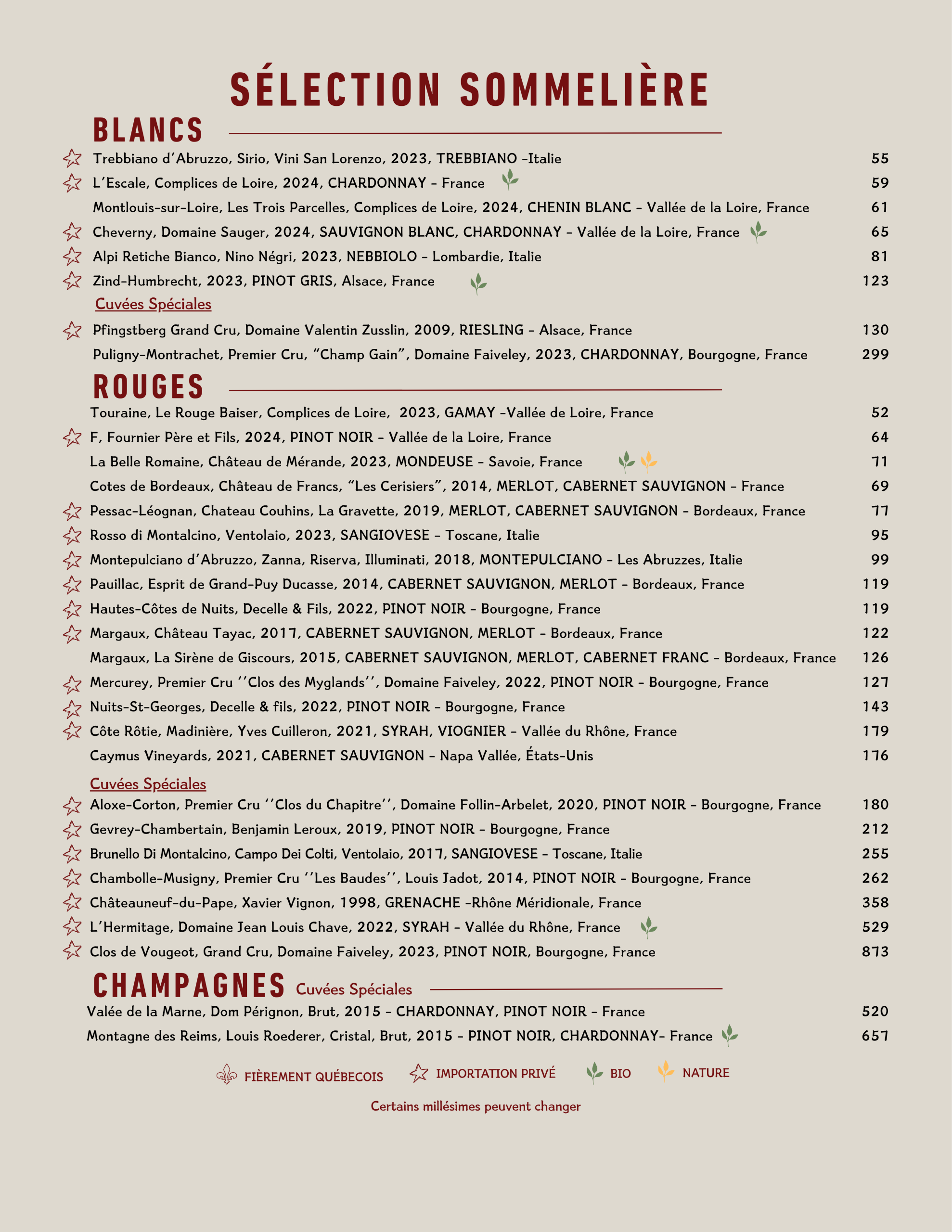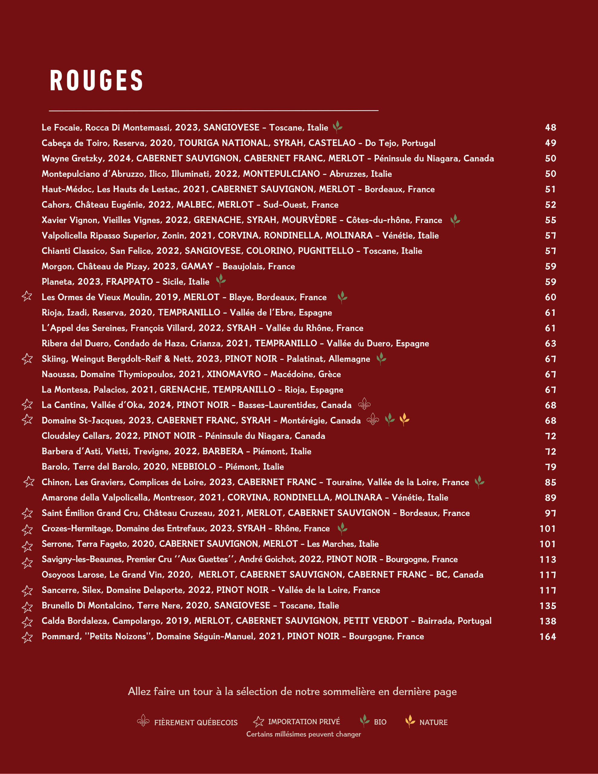 • Menu Cellier