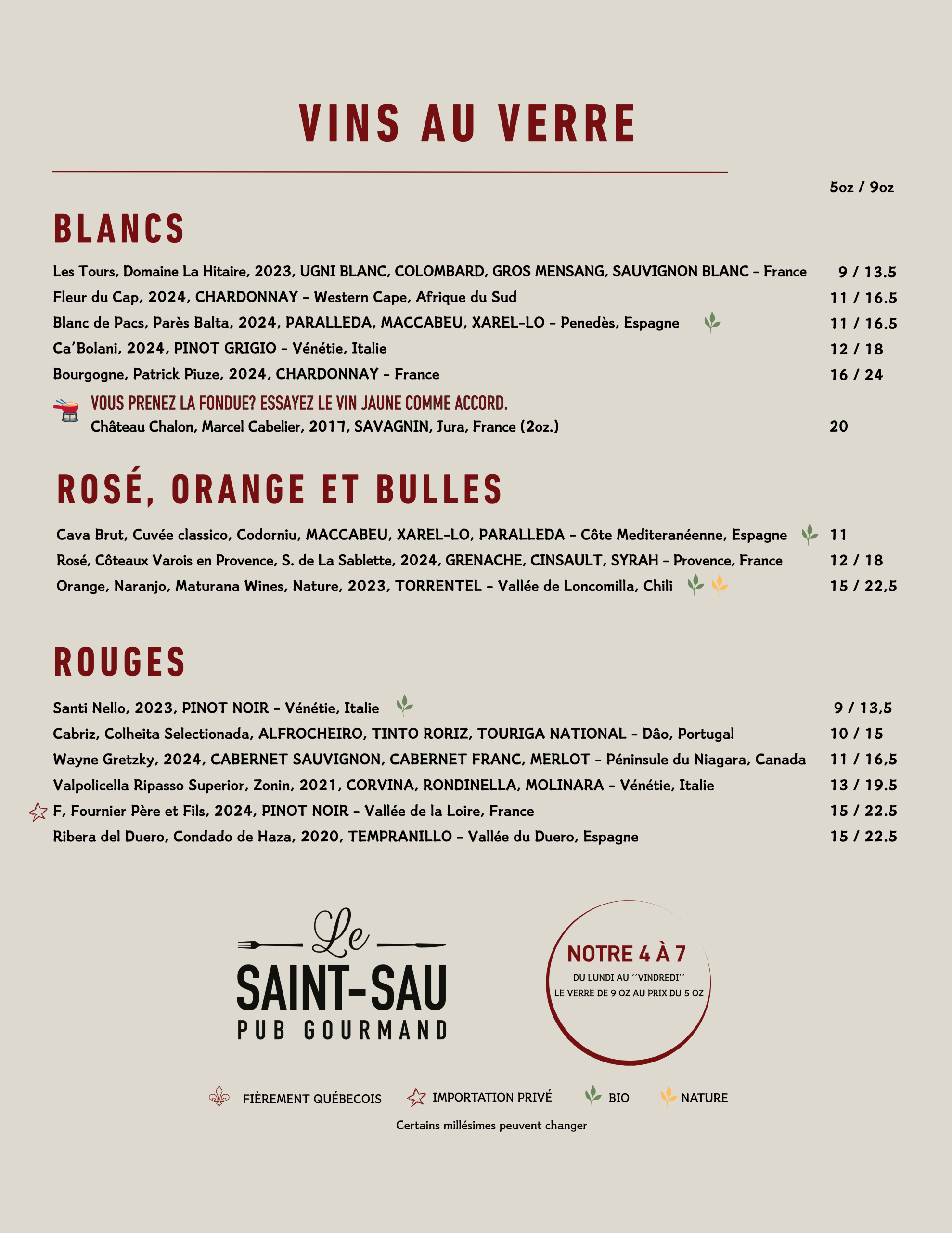 Menu Cellier
